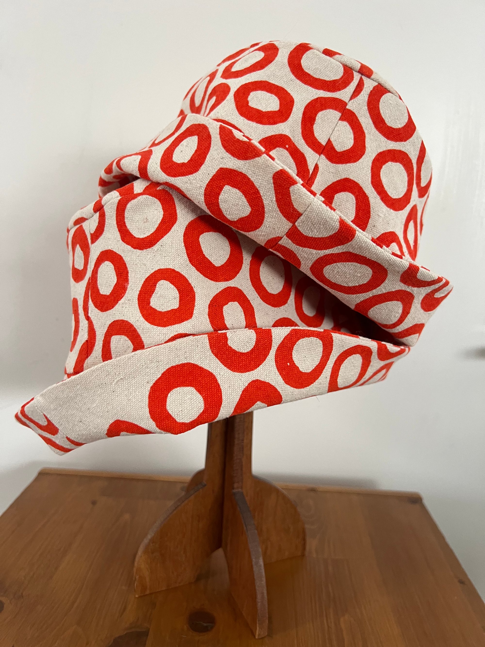 The cutest canvas bucket hat, average head size to a little larger, the visor keeps the sun off your face when down, then cute up.